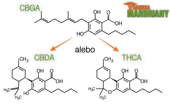 Z týchto kyselín sa potom stáva THC, CBD či CBC. CBGA sa dokáže "pretvoriť" aj na CBG, ale primárne ťahá skôr k THC či CBD.